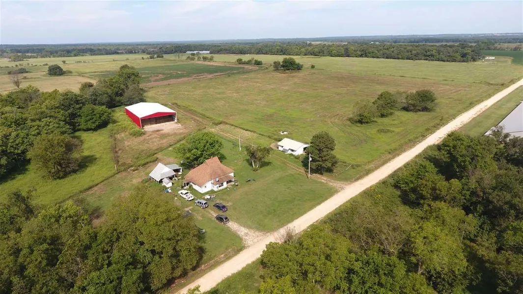 The home at 46513 S. 670 Rd, Jay, OK is currently rented at $400/mo and sits on Eastern side of the property with road frontage and a small outbuilding and a 60x80 hay barn behind it. The adjacent building has plans to be updated and made into an additional apartment with an expected rent of $150/mo.
