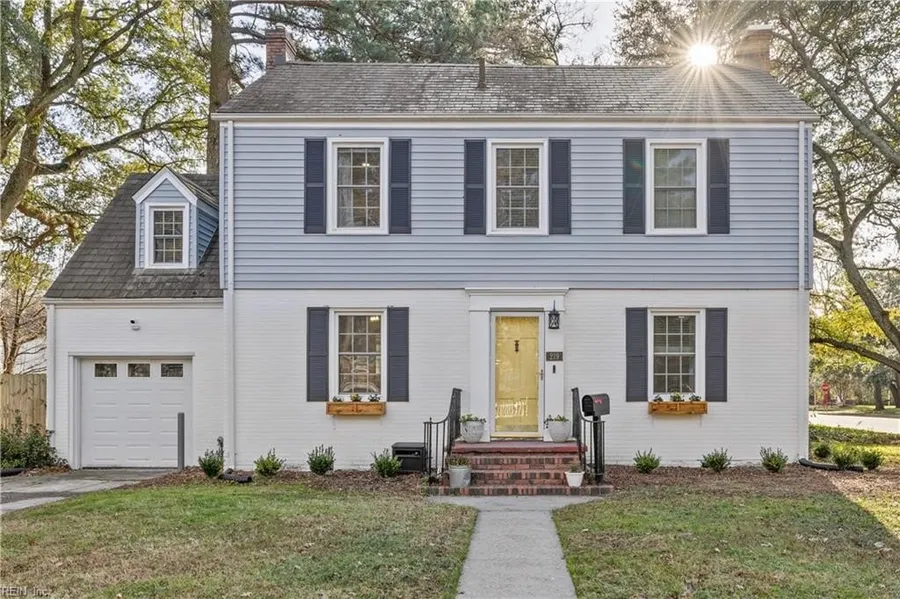 Discover this beautifully maintained classic Colonial situated on a large corner lot in desirable Talbot Park. This warm and well-built home features refinished hardwood floors, fresh interior paint, and generous natural light throughout, highlighted by floor-to-ceiling windows in the large family room. Enjoy cozy winter nights by the gas fireplace in the formal living room or host gatherings in the expansive private backyard complete with a prime bonfire area. The updated kitchen offers granite countertops and stainless steel appliances. Upstairs, the primary bedroom includes a spa-like ensuite with dual sinks, soaking tub, and a refinished shower completed in 2022. The attic stairs lead to a spacious walk-up attic, offering excellent storage. Located in one of Norfolk’s most sought-after neighborhoods with tree-lined streets, parks, and nearby grocery options — and best of all, no flood insurance required!