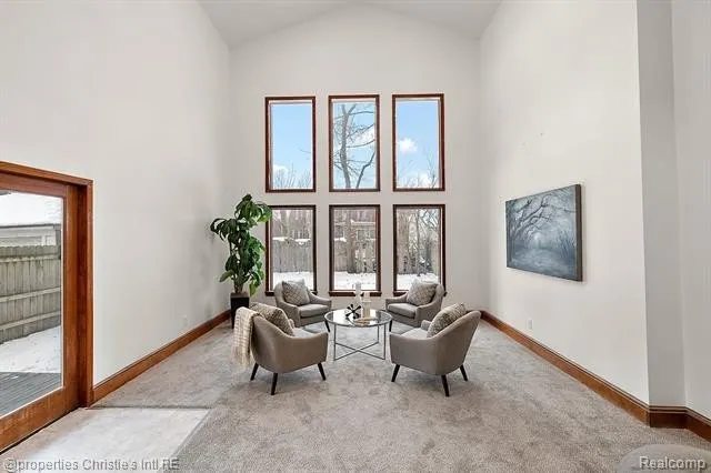 Enter to gleaming hardwood floors that guide you through a luminous living expanse, where walls of windows frame the changing seasons beyond. The heart of the home reveals itself in the extraordinary double-volume addition—a soaring sanctuary of vertical drama, crowned by a dramatic fireplace that draws the eye and warms the soul. Here, vaulted ceilings amplify the sense of boundless possibility, while seamless transitions to the adjoining dining and kitchen areas create an ideal canvas for culinary artistry and shared feasts. Custom woo...