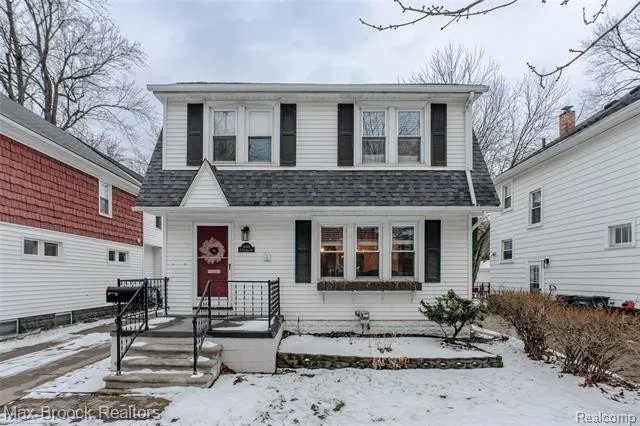 CHIC STYLE COMBINES WITH MECHANICAL UPDATES AND VINTAGE CHARM AT THIS DUTCH COLONIAL WITHIN WALKING DISTANCE TO DOWNTOWN ROYAL OAK + White and Bright remodeled KITCHEN has custom tile backsplash, tile floor and STAINLESS STEEL APPLIANCES + Refinished HARDWOOD FLOORS + Cozy Electric Fireplace in LIVING ROOM + Living Room is open to DINING ROOM with DOORWALL to deck and FENCED extra-deep BACKYARD + 1st Floor POWDER ROOM + 3 Bedrooms UPSTAIRS plus FULL BATH + Basement offers large LAUNDRY AREA, partially finished room ideal for office/craft room and ample storage + MECHANICAL UPDATES INCLUDE: Newer Windows/Doorwall, Newer Central Air & Furnace, Circuit Breaker, Recent Sewer Line Work and ROUGH PLUMBING FOR BATH in BASEMENT + BRAND NEW LIGHTING FIXTURES + Fresh Neutral Paint Throughout + 2.5 CAR DETACHED GARAGE + Nothing left for you to but MOVE IN and ENJOY! CHECK-OUT THE FLOOR PLAN TOUR!