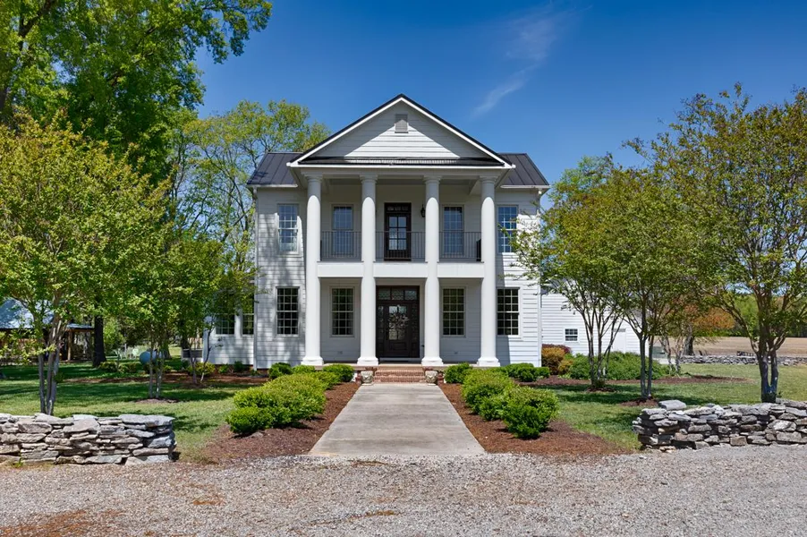 This beautiful 5BR/4BA colonial estate in rural limestone county could be your dream come true! Gorgeous columns on the front porch and 2nd story balcony, and a custom rock wall are the touches that really set this home apart. Primary suite is on the first floor along with an office, foyer, kitchen, breakfast room and formal dining room. The second floor has two full baths and four additional bedrooms. Outside features a patio, 3-car detached garage, concrete parking area, attached 3-bay shed for equipment, inground pool and two repurposed silos serving as a pool equipment storage and a 1/2 bath. Large pavilion with concrete flooring and a custom log cabin help make this property special.