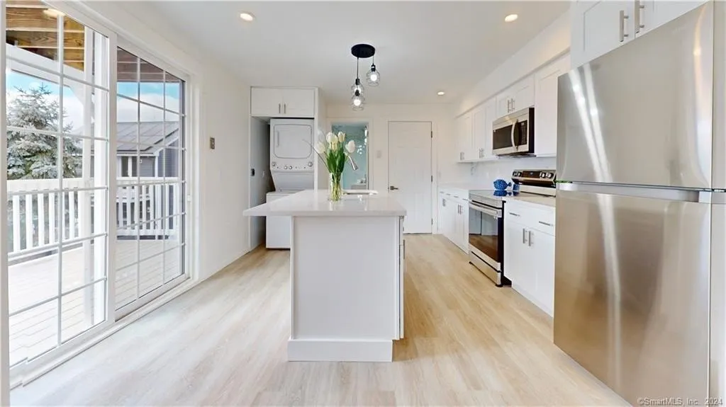 Look no further!! Welcome to the sought out shoreline community, known as the Borough of Woodmont! Completely renovated and situated on the second floor featuring 2 bedrooms and 1 full bath. The kitchen offers quartz countertops and island with ample cabinet space, brand new flooring and slider that leads you to the tranquil balcony with seasonal views of L. I. Sound; making it the perfect space to relax or enjoy your morning coffee or tea. The living room features recessed lighting and brand new flooring that continues to the bedrooms. The bathroom has been updated giving it a bright new look. Washer and dryer located in the new unit. Come live the lifestyle you deserve! Just a stroll to sandy Anchor Beach and the convenience of local amenities and everything this area has to offer; restaurants, farmer market and more! Truly a commuter's delight, short distance to Downtown Milford, Metro North train station, I-95 and Merritt Parkway. Don't miss your chance, schedule your viewing today!