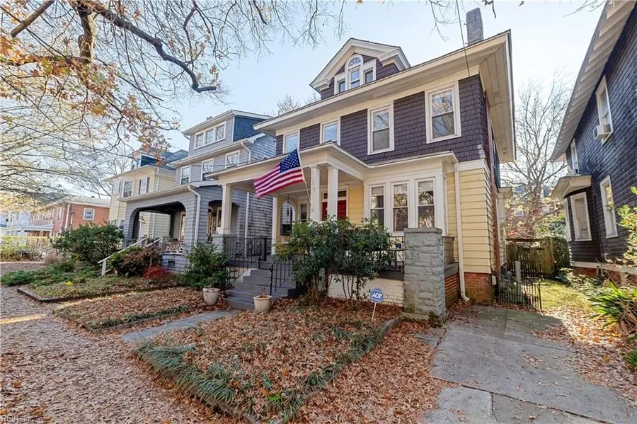 Beautifully located in the heart of Ghent, this early-1900s Colonial Revival offers classic charm, tall ceilings, great natural light, and over 2,400 sq ft of flexible living space. A bright foyer opens to spacious formal living and dining rooms with decorative fireplaces and hardwood floors. The main level includes a full bath and a well-sized kitchen with excellent layout potential. Upstairs features an expansive primary suite with its own bath and laundry closet, plus two additional bedrooms and a hall bath. The finished third floor adds a large bonus room or private 4th bedroom with walk-in closet. Enjoy the wide front porch, fully fenced backyard with patio and rainwater harvesting, and rare driveway parking. A new slate roof provides long-term value and timeless curb appeal. All just a block from vibrant Colley Ave—coffee shops, cafes, restaurants, breweries, parks, and everyday co...