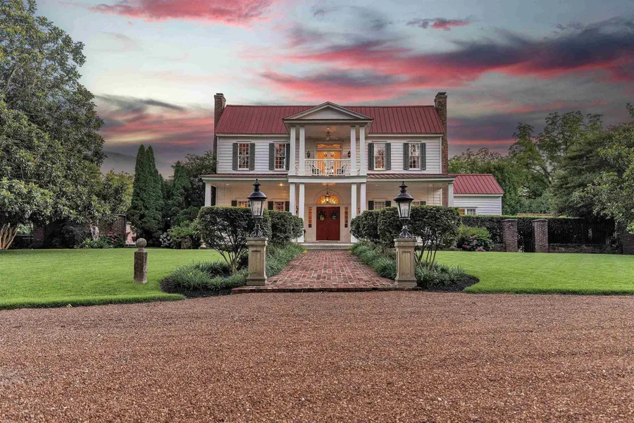 Bring your heart to Heartwood Hall—an extraordinary chance to own a West Tennessee legacy, offered for the 1st time as a private residence. Set on nearly 23 gated acres in Fayette Co (low taxes), this storied estate features a grand main residence, second home, restored 1820s cabin, & an event barn with a commercial kitchen, office, & seating for 325. With over 20,000 sq ft of heated and cooled living space across all buildings, the property is richly appointed with artisan-milled hardwoods, custom cabinetry from Kansas City, Wolf appliances, dual Sub-Zero refrigerators, + gas fireplaces in every bedroom. Leaded glass windows—crafted from the same glass used in the White House—grace the main home throughout. The grounds offer a saltwater reflecting pool, 20-ft (deepest point) stocked pond, climate-controlled dog house, & pristine landscaping supported by 3 wells, 3 septic systems, & full irrigation. Renovated by Lavelle Walker in 2009, Heartwood Hall defines historic Southern elegance.