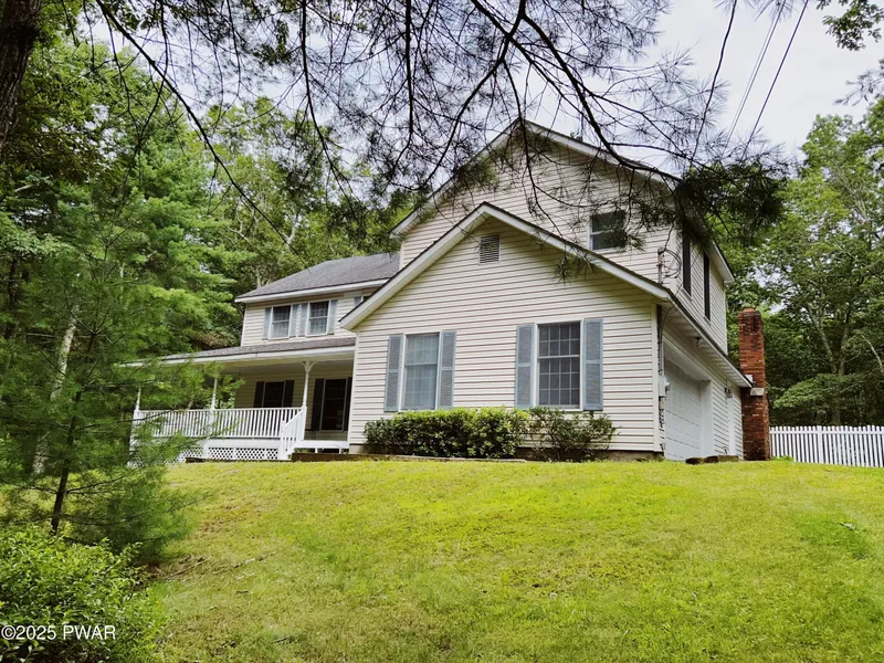 Crawford Hill Community, a desirable location in Milford, PA and Delaware Valley School District on 2.5 Acres of wooded land! This beautiful 2-story colonial style home features 3 bedrooms including a primary bedroom and an additional ensuite plus an office and a finished attic that could be used for a multitude of uses including a gaming room, craft room and so much more! The main level offers a great room with an eat-in kitchen and family room area with a brick wood burning fireplace, hard wood floors and doors to the patio overlooking the built-in pool area. A formal dining area and formal living room are also on the main floor. An unfinished lower level provides future expansion of additional living space. A 2-car garage, covered front porch and paved driveway complete this country property!