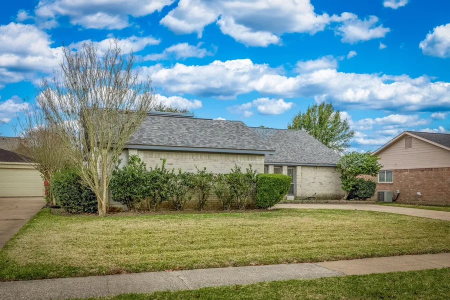 This beautifully renovated single-story home in the desirable First Colony community offers modern comfort and single-level living. Built in 1980, this 2,195 sq ft residence features 4 bedrooms, 3 bathrooms, and recent updates including a recent roof, plumbing, and electrical system improvements. High ceilings, skylights, and windows on three sides fill the home with natural light, creating a bright and open floor plan. The primary suite includes a private retreat, while three secondary bedrooms offer flexibility for family, guests, or offices. The open living area centers around a fireplace and flows into a gourmet kitchen with granite counters, stainless appliances and custom cabinetry. Exterior highlights include a wide driveway, attached 2-car garage, and North-facing orientation for energy efficiency. Enjoy central A/C, gas heating, and the amenities of Colony Bend: pools, parks, top-rated Fort Bend ISD schools, plus easy access to shopping, dining, and Highway 59.