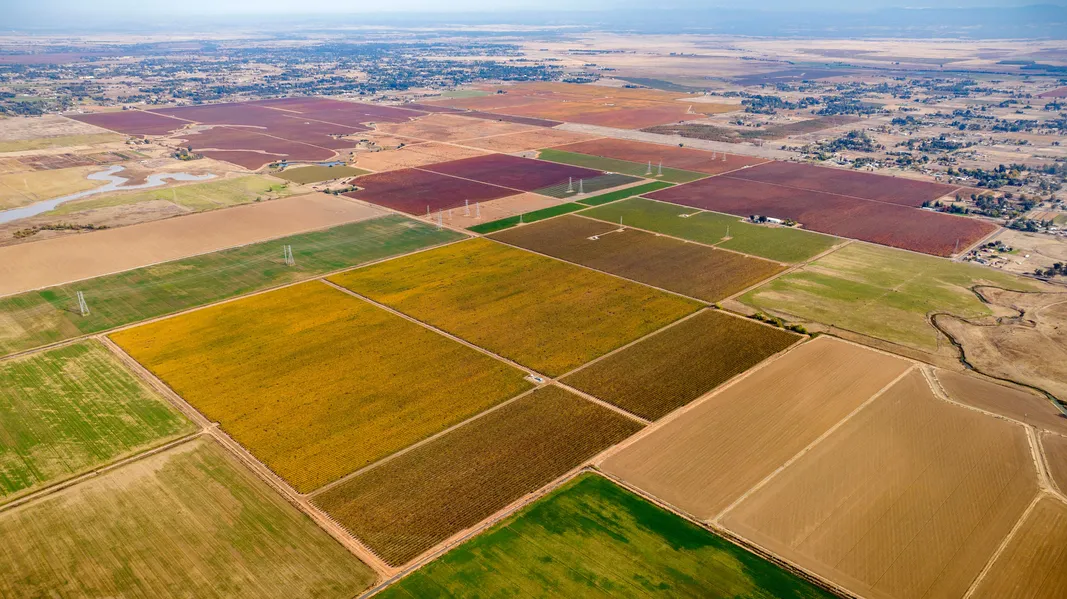 Surrounding land uses include almond, walnut, and olive orchards, winegrape vineyards, and irrigated row crops.