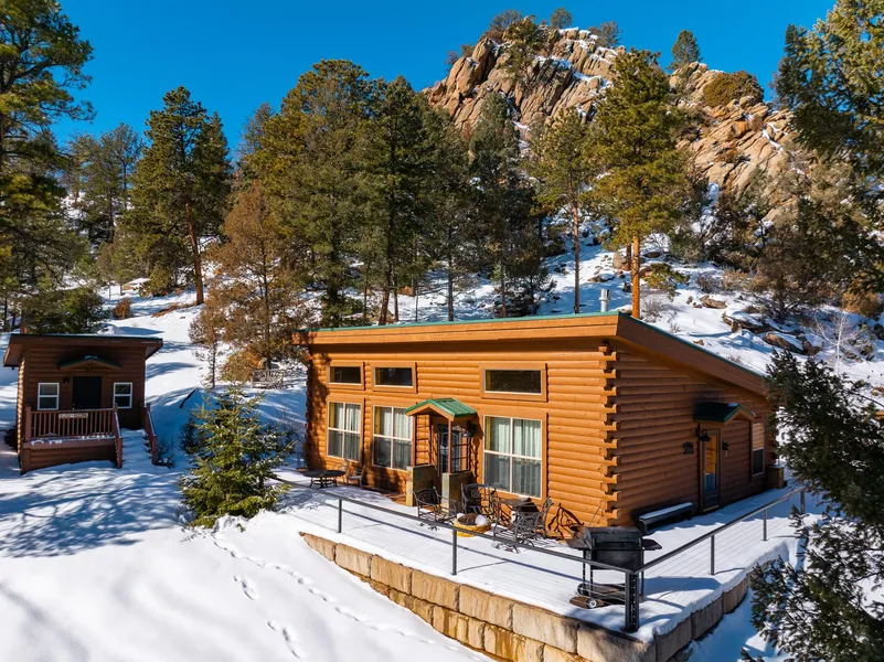 Highland Meadows is framed by inspiring and scenic rock formations towering above the hillsides. This property is comprised of 3 separate land parcels. The log home and improvements are located on the larger 2.87- acre parcel. This lot has walking paths that take you to sitting benches which allow you to absorb the area's beauty. For the adventurous, you can climb to the top of the rock formations and see for miles. There are two additional 2 acre lots if you desire to build more cabins for your family compound. You would be allowed to build additional homes and outbuildings on each Lot, and you could drill 2 additional wells. The land is covered with ponderosa pines, Douglas fir and aspen trees. At 8169 feet elevation, enjoy year around comfort with the low humidity in this comfortable semi-arid climate. You can enjoy an average of 247 days of sunshine per year with average July high temperatures around 86 degrees, and January high temperatures averaging in the mid- 30's. With only 103 days of precipitation,10.24 inches of average annual rainfall, and 58 inches of annual snowfall, this area will provide you with comfortable year- round living. The property is easily accessible all year long.