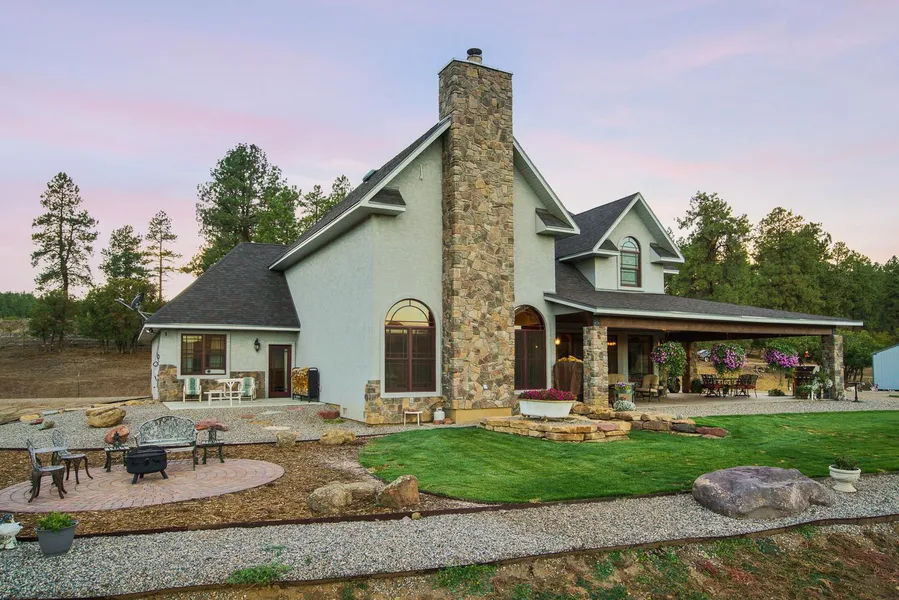 Your private trophy home with sweeping open views! An abundance of prestige craftsmanship that boasts over four thousand square feet of living space, this French country Victorian home is one of a kind. Gracious green pastures welcome you as you enter the property accompanied by stunning views of the home itself. Built in 2012, the newly crafted home is a prized estate. The home is three bedrooms, two full baths, one half bath, an office, state of the art kitchen and breakfast nook, formal dining room, spacious pantry, two-car garage, a wood and lawn shed, a loafing shed for horses and a well that produces fifteen plus gallons of water per minute all displayed on thirty-five plus acres. A custom entry way leads you to the magnificent front foyer of the home with grand doors and niches. Leading in from the foyer to the great room the handcrafted stairway will take your breath away. Underneath the first landing sits a picturesque and charming wet bar crafted by the same workmanship of the wooded stairway. The bar is an endearing touch to the main living area, ideal for great entertaining! The state-of-the-art kitchen is finished with seamless granite countertops, a farm sink, large stainless-steel appliances, a spacious pantry, and a quaint breakfast nook with large windows looking out to the lush green pastures. Aside from the kitchen is the magnificent formal dining room with elegant style bringing in a warm Victorian feel in correlation with rest of the home. Entering into the great room you are immediately mesmerized by the overwhelming but peaceful openness. A custom wood burning fireplace is the centerpiece of this extravagant space. The great room is perfect for any trophy collector or art enthusiast with its nineteen and one half-foot ceilings and specifically crafted structure for displaying the highest end and most substantial trophies or art pieces. Elegant dark crown molding is throughout the ceiling adding subtle charm and tranquility in the living area. On the main level along with the main living area is the master suite, a private sanctuary. With a large walk-in closet, custom bathroom with a jetted tub and large two-headed shower, an exquisite private patio overlooking the southern pasture, all ideal for slipping into your own oasis! The second level has plenty of space! A lofted din area that would make a great TV room or reading nook, a private office with a walk-in closet would easily turn into a bedroom, one traditional bedroom and one full bath, and to top it all off, a sizeable craft/game room with its own kitchenette. Great for guests or even a workout room! Built sturdy for all of the heavy workout equipment. The second level also adds on to the living area below. Great for entertaining as the stairway landing is a statement piece for overlooking great room and foyer. Off of either the kitchen or great room, you step out on to the beautiful veranda which could easily be mistaken as more living space as it is that stunning! The stained tongue and groove ceilings allow for the elements of the interior to carry on outside to the massive covered porch. Those evening views will stun you as you enjoy company and/or peace and quiet. This home is great for its landscaping capabilities. A beautiful green yard can be kept all summer long with the underground sprinkler system. Flower beds and vegetable gardens would grow well on this property with plenty of water from the well. One storage shed for wood and lawn equipment is conveniently located near the house for easy access. Down below the home sits ample amount of flat acreage useful for many purposes; horses, big-toy storage, barn, shop, guest house if one chooses to build. Plumbed for septic, water and electricity it would be easy to add any exterior structure to this already incredible estate! This home is truly one of its kind and ready for you to make it all yours! Come see this amazing opportunity today!