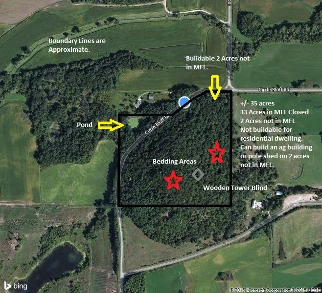 +/- 35 wooded acres of rolling and level terrain. Being surrounded by Ag fields and pastures makes this property perfect for hunting whitetails, turkeys, or ducks on your own piece of paradise in the country. Property in enrolled in the MFL closed program as of 2014, but 2 acres have been left out so you can build a pole shed or Ag building. Buy now and receive the income from the schedule select harvest in 2017. Property is not buildable for a residential dwelling because of an Ag overlay. Only 35 miles from Madison.
