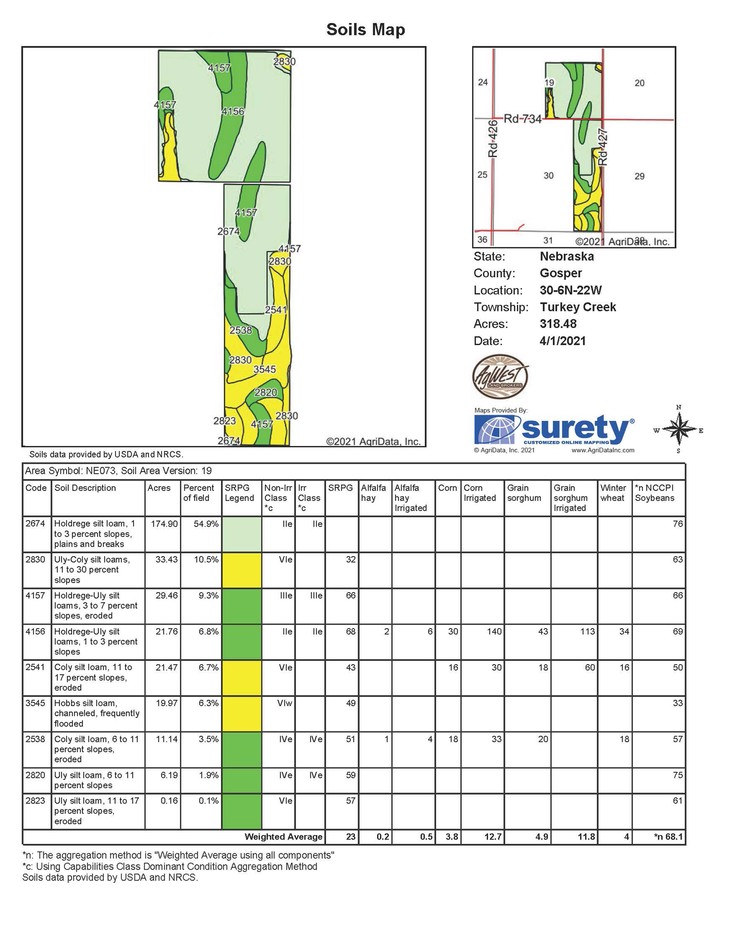 Read MoreSearch for detailed parcel information including; Elevation & Vegetation Maps, Ownership Information, Detailed Parcel Information, Crop History Map, Soil Survey Productivity Data, and more.