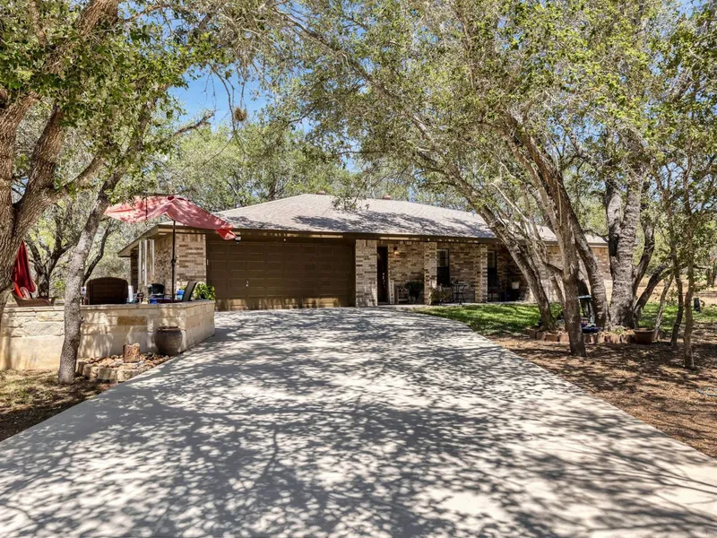Come experience life in the country! This 7 ACRE/Corner Lot property offers abundant space, and has possibilities for horses, chickens, or other domestic animals. Mature trees surround the home, offering privacy and a picturesque setting. Work and shopping are a short drive away from nearby Pleasanton and SA. The indoor space includes a large, eat-in kitchen with lots of counter space, a bright expansive living area, built-in book shelves, and a quiet primary suite with access to the large, covered back porch. Each room in the home boasts beautiful plantation shutters. The property also offers two water sources (co-op and private well). Come experience country living! This is a MUST SEE!