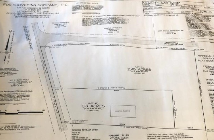 Lot #1: 2.45 Commercial acres for sale in Statesville NC near intersection of Old Mountain road and Interstate 40. Land is cleared and level. Road frontage on Old Mountain Road (100+ ft) and Conifer Drive (566+/- ft). Additional parcel available. Zoned General Business $330,000 This lot has road frontage on Old Mountain Road and Conifer Drive.