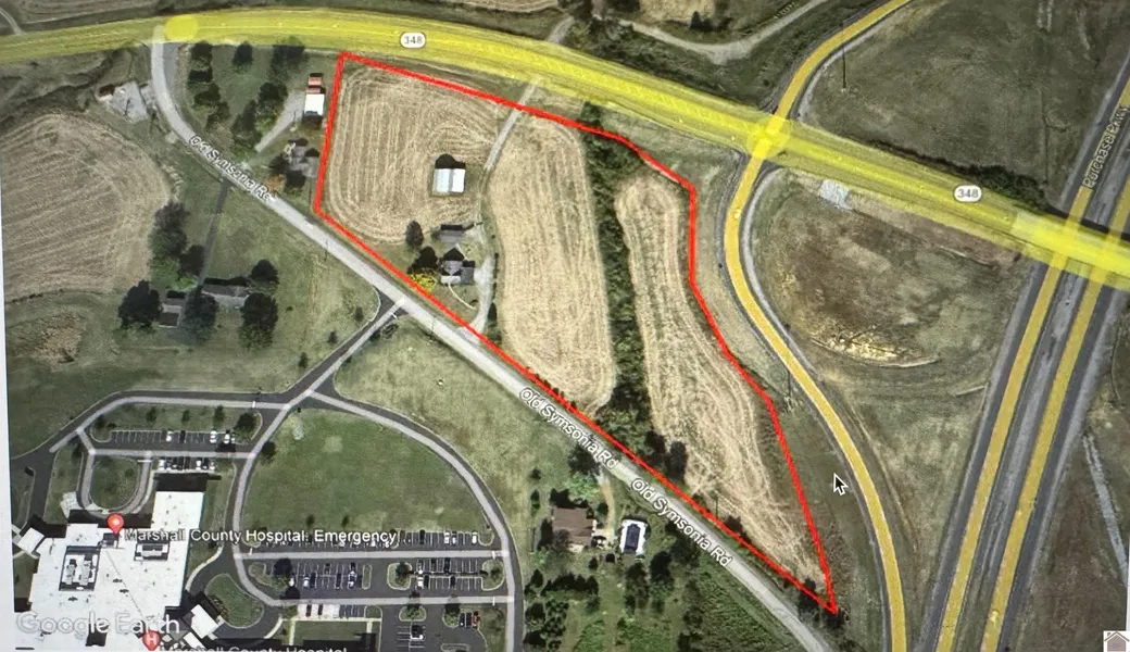 This location is accessible off of I-69 and Symsonia Hwy ( 348 ) with another access point off of Old Symsonia Rd. This 7.55 acre track is ready for development with prime access to I-69 as well as Marshall County Hospital and adjacent Doctors offices. High visibility from I-69 North and South. Located in the City of Benton with all city amenities. Photo shows former home on property that has been removed.