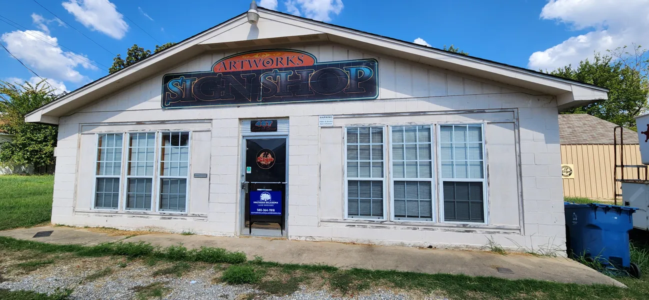 Property is has a partial new remodel in the front area of the building with many new features. Currently used as a sign/print shop. Some of the equipment, tables, desk, and miscellaneous for sale sold separately with office. Features include, new heat and air mini split systems. New wiring through out the building with new electrical box. New sewer and plumbing. New 30 year LED lighting. Natural gas is lined into building, but not currently used. Hot water in kitchenet, and 5 gallon hot water tank. Wired for 220 welder. New overhead doors ( 1 electric.) Slab in work area of building. Ally access to side garage door and exit door. 3rd work area, but needs new roof and flooring. Not currently being used.