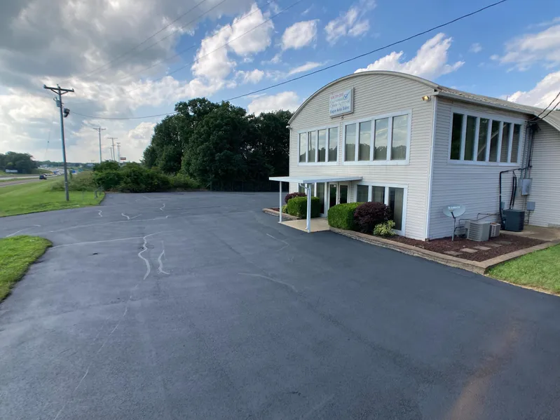 Commercial lease available with I-70 frontage. High visibility and tons of space for many different business types. 2 Acres with a 7300 Sq ft building. The building has a 2,000 sq ft retail/office front with 4 offices, conference room, kitchen and 3 bathrooms. The remaining 5,000 sq ft is a climate-controlled warehouse with overhead door in the rear of the building. The parking lot has been resealed and HVACs have all been serviced. Owner open to many options regarding lease terms. An additional lot available for more parking and highway visibility. $5,000/mo NNN