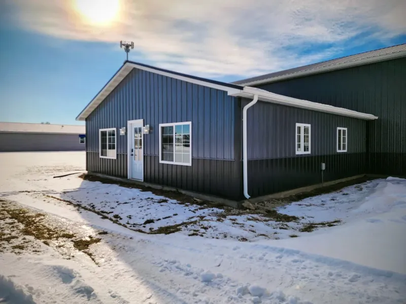 Built in 2022 and housed a construction company and offices. The front portion of the building (office space 900 sq ft.) is a large lobby area and office ( 15'x 8' & 4' x 6') with a glass window for viewing area of the lobby. This part of the building also houses a half bath that is ready to be finished to have a walk-in shower. Also, a small storage room that houses the on demand water heater and radiant floor (heats both office and shop) heat valves and controls. The shop area is 2,560 sq. feet and has 16 ft. tall ceilings, two 12x12 ft. insulated doors with automatic door openers. A bar area and storage room ( 23'x 15') There is a 15x40 loft that contains a lounge area and 3 possible offices or store rooms. 200 amp service. Lot is approximately 1.23 acres ( will be subdivided before closing). This location has a lot of traffic o...
