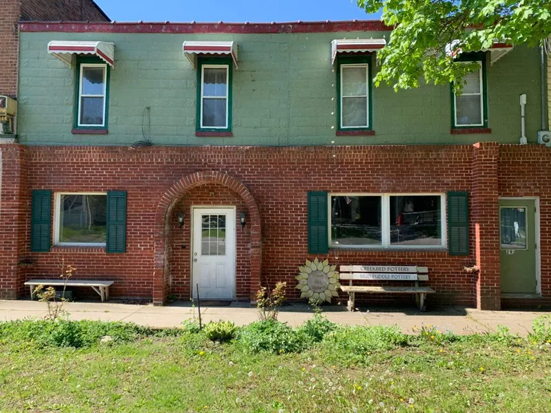 Great investment opportunity! Approximately 3,000 sq. ft. of commercial space on the first floor. This very accessible building would be perfect for many kinds of businesses, vendors, restaurants, etc. Previously, the first floor was a very busy restaurant for several years. Currently, the first floor is an active Pottery Shop. The second floor consists of a 2 bedroom apartment with a full bath, open concept living and dining room and an eat-in kitchen. Live in the second floor apartment and rent the commercial space to pay the mortgage. Air condition unit on the first floor. Newer furnace. Several windows for natural light. Also, includes three phase electric with a 200 amp circuit breaker box.