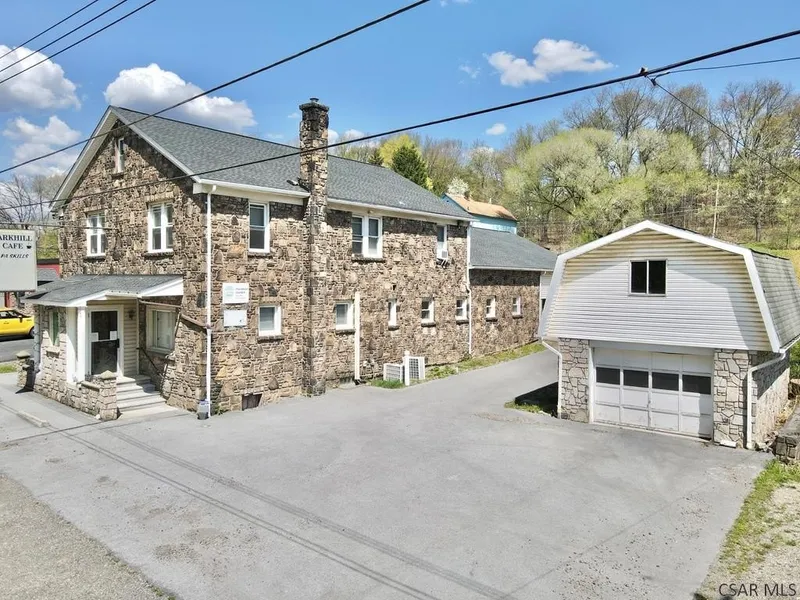 MIXED USE COMMERCIAL & RESIDENTIAL opportunity awaits! This well built stone building in East Taylor Township could be the perfect spot for a restaurant, cafe, grocery store, bar -- you name it! And it all comes with beautiful living quarters on the second floor - 3 bedrooms! Additionally, there are spacious sections of the 2nd floor & 3rd floor that could be finished. The 3rd floor currently has a bathroom with jacuzzi tub. Unfinished basement. The 1 car detached garage features an unfinished loft for additional storage or expansion. Call today!