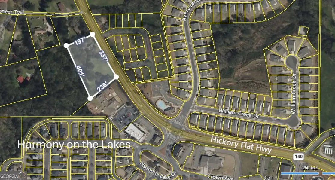 2 acres zoned Office Institutional (O&I) in the City of Holly Springs on HWY 140 (Hickory Flat Hwy). The property has 337 FT of road frontage and a traffic count of 17,800+ cars /day. This is an exceptional development opportunity directly next to the Harmony on the Lakes and all utilities are available. This property is approximately 3 miles from Northside Hospital Cherokee, I-575, and the Canton Marketplace which offers an abundance of restaurants and shopping, like Starbucks, Olive Garden, Taco Mac, Target, Lowes, TJ Maxx, Best Buy, and many others. The much anticipated Holly Springs Town Center coming in the Winter 2025 is less than 5 miles from the property. The highly desirable community of Hickory Flat is 2.5 miles away offering Publix & Kroger grocery shopping and restaurants like Popeyes, Chick-Fil-A, Arby's, Zaxby's Waffle House and much more. The topography is excellent, making this property an incredible investment in a thriving and growing community!