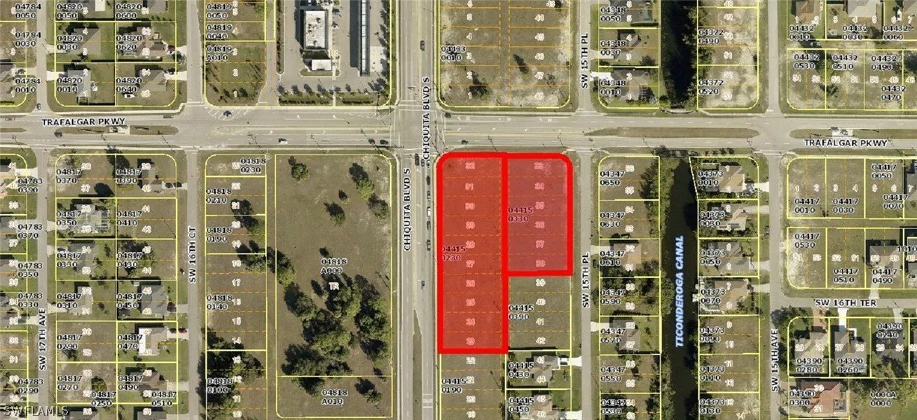 This 2 acre vacant commercial site is the last corner site available at this signalized intersection in a fast growing area of SW Cape Coral. The site features 3 road frontages with 406' of frontage on Chiquita Boulevard and 270' of corner to corner frontage on Trafalgar Parkway. Excellent visibility and access on this prime site in the pathway of growth. City water, sewer, and irrigation available. Buyer to assume assessment balances at closing. Adjoining rear lots available with another broker, site can be expanded to 2.5 acres with theses lots.