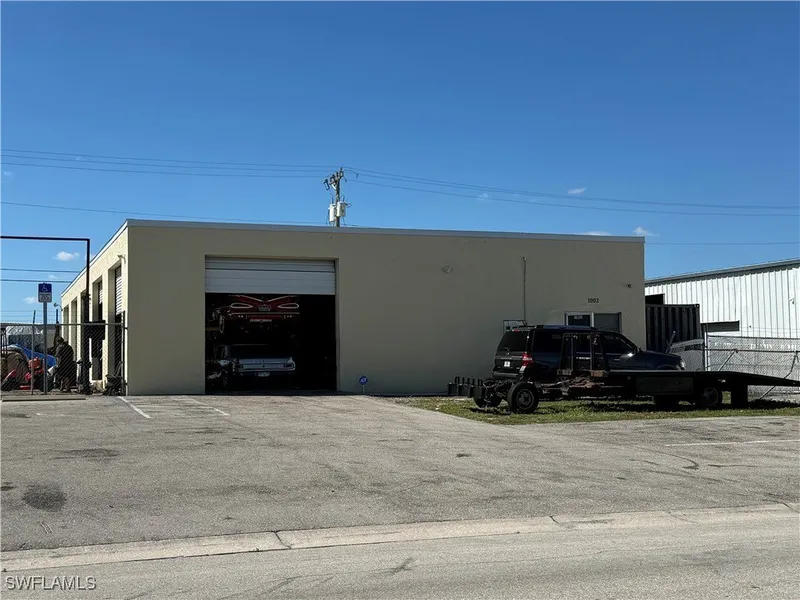 For Sale Warehouse/Automotive shop Centrally located in Mid Cape Coral makes access to the property quick and easy from any of the Cape's main roads. Specs: 8 12'3 x 12 doors, rear room for work or storage 38.6 x 16.6 hazardous material room with fire door. Fenced lot with new camera system and ADT alarm system. Office and bathrooms recently renovated. New AC unit. New T. P. O. roof covers concrete roof. Plenty of parking. This zoned light industrial. Lifts, compressors, pallet racks, hose reels, and electric fork lift with charger are available for purchase with the property at a additional cost of $40k that includes: 1 10K lbs 2 post lifts, 3 7K lbs 2 post lifts and 1 12K lbs 4 post. As well as 2 flat bays. 2 - 250 gallon 3 phase compressors, 1 15 hp single pump and 1 15 hp duplex. 6 retractable 50' air hose reels with 2" supply line. 2 9k lbs 2 post lifts, 1 7k lbs 2 post lift and 1 22K lbs 4 post lift installed in fenced area.