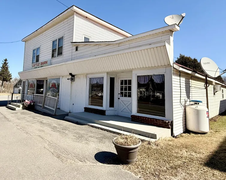 Don't miss this incredible opportunity to own a fully-equipped, turn-key bar/restaurant. The space features a full kitchen with a prep area, ovens, and refrigeration. There's also a spacious, separate event room and a fully stocked bar with a walk-in cooler. The main seating area includes a cozy propane fireplace, creating a warm, inviting atmosphere. Ample dry storage space and two large bathrooms are also available. The sale includes all equipment, furnishings, inventory (excluding alcohol), and decor. Apartments partially finished upstairs. Plus, there's a large parking lot for plenty of convenience.