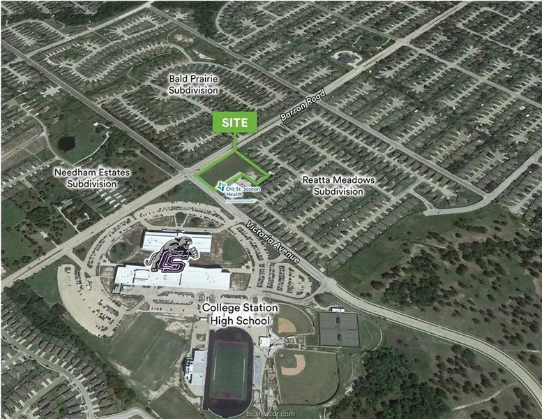 Directly across from College Station High School (1,600 students) and near Spring Creek Elementary. Platted & zoned, with all utilities, shared access, and detention basin in place. Extremely visible hard corner, adjacent to St. Joseph Family Medicine. Surrounded by several established and developing residential communities. Households in the area are projected to climb over 39,000 by 2022. Average household income over $123,000 within 3 mile radius.
