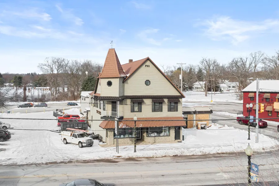 Fantastic and sought after NE location in the heart of Comstock Park with easy access to highways and Alpine Ave. commercial corridor. Highly visible commercial building on the corner of West River Dr. and Lamoreaux Dr. with large traffic counts at slow speeds. 2 apartments upstairs with separate utilities and entrances for additional income. Entry opens to a large showroom floor with a reception area. Six separate offices, an office kitchen, 2 half baths, and loads of storage complete this level. The second floor provides a 1 bedroom/1bath apartment and a 2 bedroom/1 bath apartment. The third floor has hardwood flooring and has the potential to be converted from storage into a 3rd apartment(Plainfield Township approval would need to be obtained). A full basement, new flat roof, newer arched steel roof, and an incredible new investment opportunity are just some of the extras to be found in this one of a kind offering!