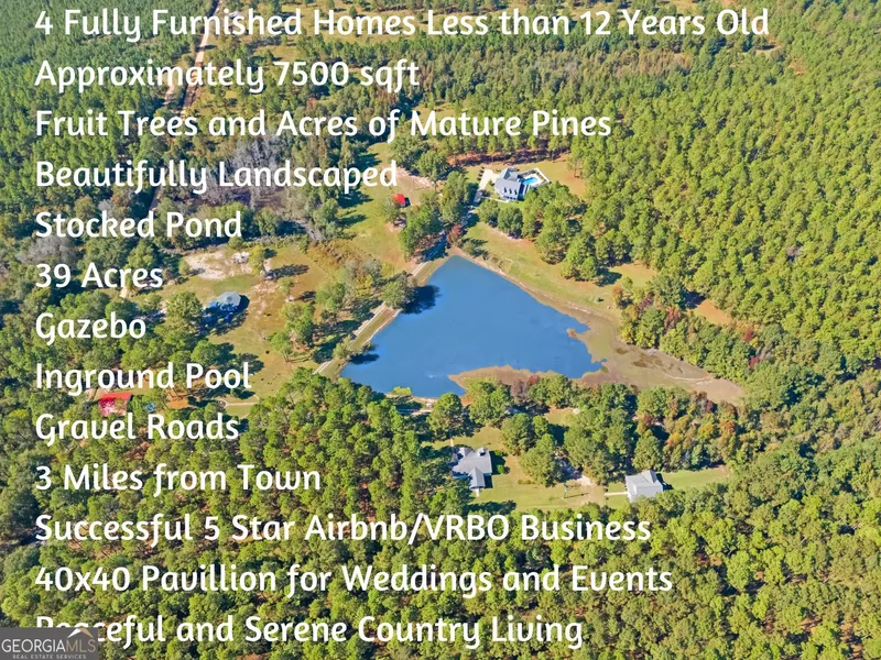 **Bethel Village Retreat and Lodging - A Peaceful Escape, A Purposeful Investment** Nestled on 36 serene acres in Eastman, Georgia, Bethel Village Retreat is a thriving short-term rental and spiritual retreat destination that blends tranquility with opportunity. Beautifully landscaped and fully equipped for hospitality, this income-generating estate is an exceptional opportunity for investors, retreat leaders, or families seeking a multi-use compound. **Property Overview** The retreat features four fully furnished homes designed for comfort and flexibility. Sale includes all furniture, fixtures and equipment; property conveyed as-is. : **Bethel House** - 4 BR, 3.5 BA, pool, 2 main suites, screened porch **Hope House** - 2 BR, 2 BA, built 2021, charming wrap-around porch **Genesis House** - 3 BR, 2 BA, cozy with wood-burning fireplace **Revelation House** - 1 BR, 1 BA, 700 sq. ft. with electric fireplace Each residence offers full kitchens, porches, outdoor grills, and inviting spaces, making them ideal for short-term rentals, group stays, or long-term accommodations. **Shared Grounds & Amenities** Guests and residents enjoy a wealth of outdoor amenities, including: * 40'x40' lighted pavilion with ceiling fans * Gazebo with lights and fans for gatherings * Walking and biking trails, stocked fishing pond, and kayaks * Fruit trees, serenity garden, and decorative lighting throughout the property * Wrap-around porches, BBQ grills, corn toss, and dog pen * Six security lights strategically placed for peace of mind **Business at a Glance** Bethel Village has established itself as a proven hospitality business with strong year-round bookings. The retreat is listed on Airbnb, Vrbo, Peerspace, and Google, with an **Airbnb Superhost reputation** and centralized host hub for efficient management. Its consistent income stream makes it a turn-key investment property. **Versatile Uses** With its combination of natural beauty, modern amenities, and established rental presence, this unique property is perfectly suited for: * Family compounds and reunions * Weddings and event venues * Spiritual retreats or treatment centers * Small group gatherings and corporate getaways Bethel Village Retreat is a one-of-a-kind property that offers both a peaceful escape and a purposeful investment. Whether you are seeking to grow a thriving short-term rental business, create a destination for spiritual renewal, or establish a family legacy estate, this versatile property provides endless possibilities. 4 Parcels are as follows: 026033, 026011, 026011A, 026011B
