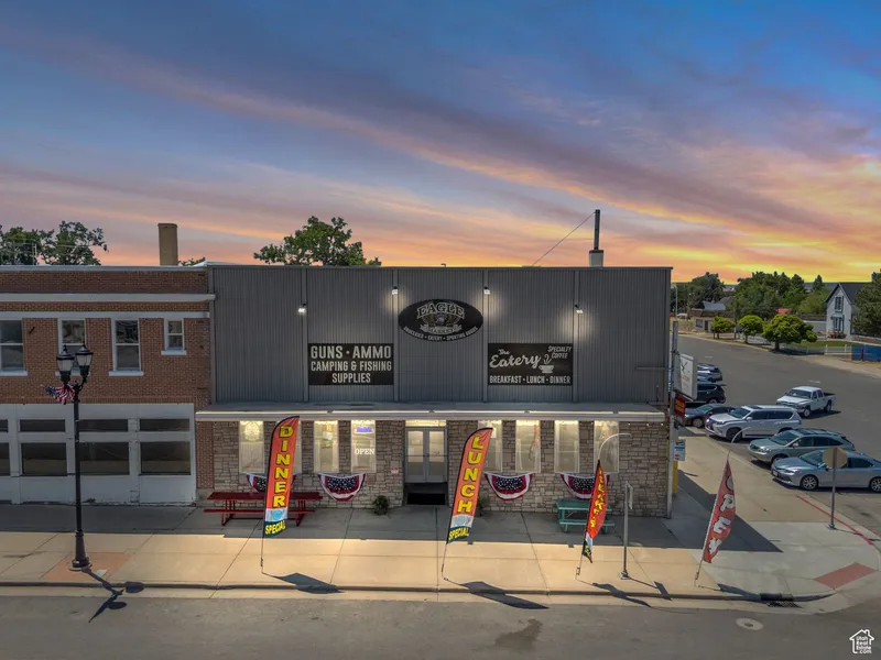 Iconic Historic Building in the Heart of Fillmore! Own a piece of history in the center of Utah's first capital city. Built in 1907 and located on the high-traffic corner of Main and Center Streets, this landmark building has been beautifully renovated and is ready to generate income. The main floor features over 7,600 square feet, currently home to a popular grocery store complete with a beer cave on one end and a lively restaurant and bar on the other. Upstairs you'll find more than 3,000 square feet of space, ideal for offices, apartments, or expansion. The 3,000-square-foot basement offers even more potential for development or storage. With high visibility, updated systems, and charm that can't be replicated, this is a rare opportunity to own a cornerstone of Historic Fillmore. Ample room remains to increase cash flow and build out unused areas to meet your vision. Inventory and equipment negotiable.