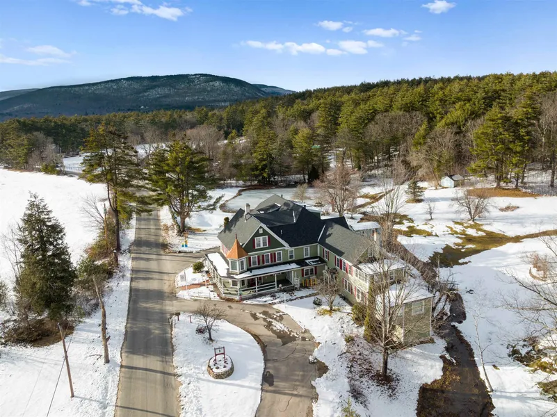 Welcome to the Rosewood Country Inn, nestled in Bradford, NH! This property is less than 10 minutes from Lake Sunapee and 15 minutes from Vail-owned Mount Sunapee. 30 minutes to Concord, under an hour to the Vermont border, and close to the Upper Valley and Dartmouth region. This property, which spans about 12 acres and includes a private pond with a gazebo and meticulously landscaped grounds, is the perfect opportunity to host weddings, continue running a bed and breakfast, or reposition it into a multifamily or rehabilitation center. The Inn has 11 beautifully appointed guest rooms, each with its own en suite bathroom. Nine rooms have fireplaces, and four have jacuzzis. This property has undergone significant upgrades in recent years, including a new industrial kitchen, walk-in freezer, refrigerator, a new roof, a 106-panel solar array, upgraded electrical from 200 to 600 amp service...