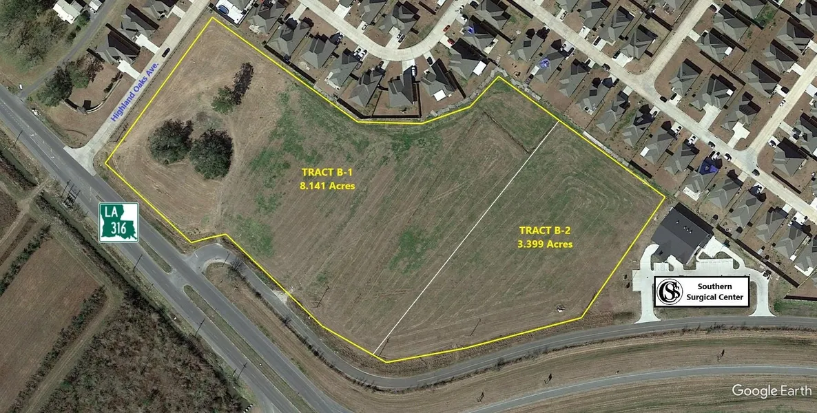 Tract B-1 located on the corner of Bayou Blue Road and the entrance to Highland Oaks S/D. This listing is a prime development tract just off Highway 90 and Hwy. 316. This tract is currently in Flood Zone C. This tract can also be purchased with adjacent Tract B-2 which contains 3.399 acres for a total of 11.54 acres.