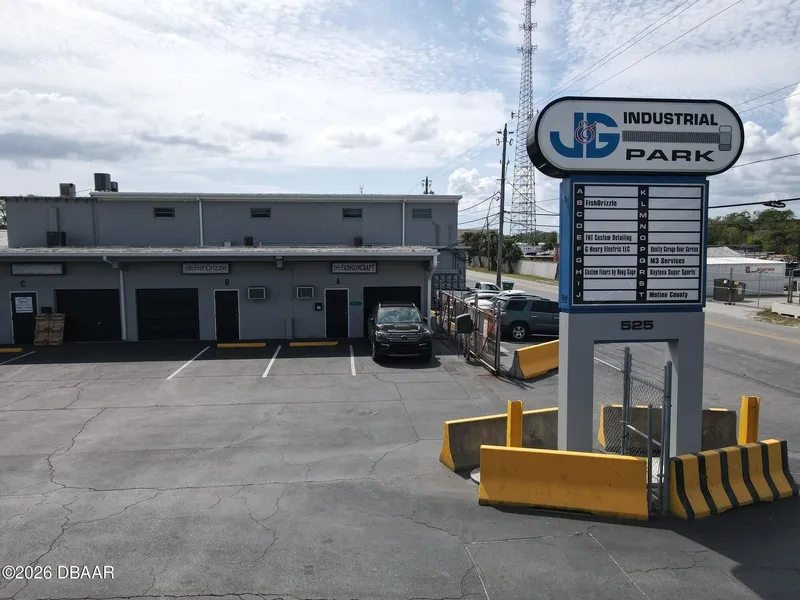 Industrial / Office Spaces For Lease- 1,000 SF Unit C - 1,000 SF With Small Office and Bathroom - 8'W X 7'H Roll Up Door Unit F - 1,000 SF with two small offices and storage room + bathroom. Rollup 8' 7'' H Security Gate and Cameras on Property Zoning Good for Auto Dealers License Roll Up Doors Ranging in Size - 7' - 9' Holly Hill CC-1 Zoning Concrete Construction - +11' Ceilings NNNs are +/- $2.82/SF