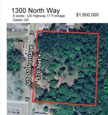 This well-located 8 acre tract zoned commercial with several hundred feet of frontage on US Highway 17 (North Way) is situated right in downtown Darien. Property is perfect for commercial development. Property is located near restaurants, banks and retail shopping right on North Way. Owner will consider subdividing the property.