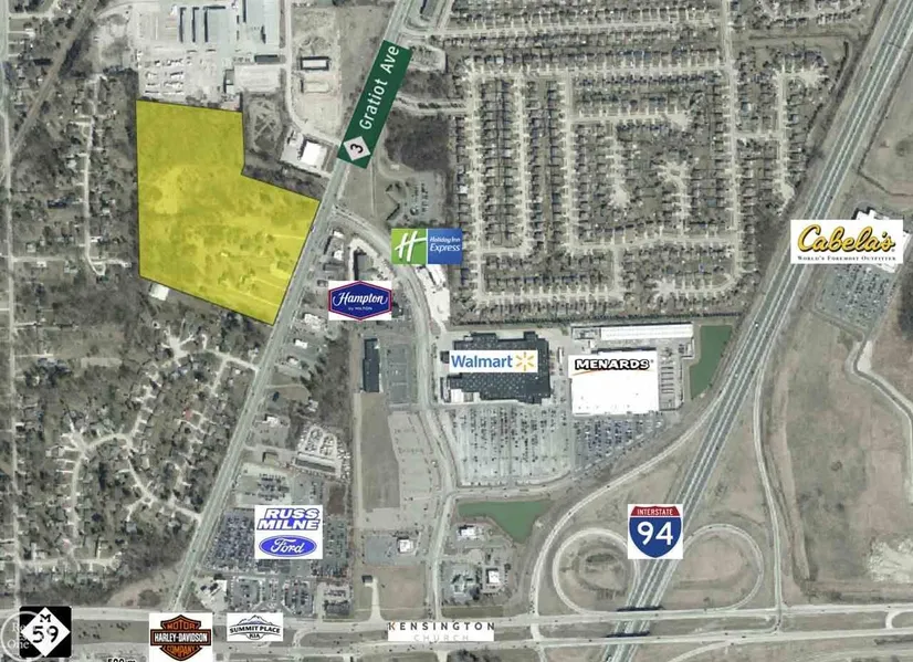 765 feet and 21.74 acres of Prime Gratiot frontage. Zoned commercial and residential. Join Walmart, Menards, Cabelas, Ford, Hampton Inn, Holiday Inn. Perfect spot for a new residential development or business. The Homes and building on property are occupied and producing POSITIVE CASH FLOW. Terms Available..... Rare opportunity in this fast developing location! Includes 45815, 45729, 45777 & 45925 Gratiot