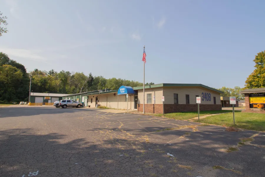 This 14,976 SF flex building offers a prime location with convenient access to the highway via Sprinkle Road. The property provides a versatile layout that can accommodate a range of uses and business needs. The space includes individual offices suites of approximately 300 and 400 SF, with access to a common area breakroom and two restrooms. At the front of the building, a 3,000 SF office area features eight private offices, a conference room, and two restrooms.
