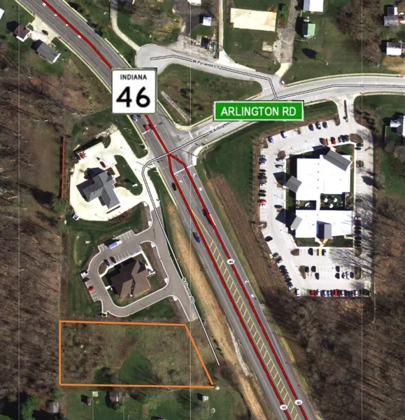 An excellent commercial parcel with road frontage on what is one of the fastest growing corridors in Monroe County. Property has excellent commercial cut (entry) that lines up with Arlington Road for stoplight access. Sewer utility is currently on the property and it is in a TIFF zone. Excellent location with endless commercial possibilities being zoned GB. Adjacent to Owen Co. State Bank and Farm Credit Services! (Listing Agent is part owner.)