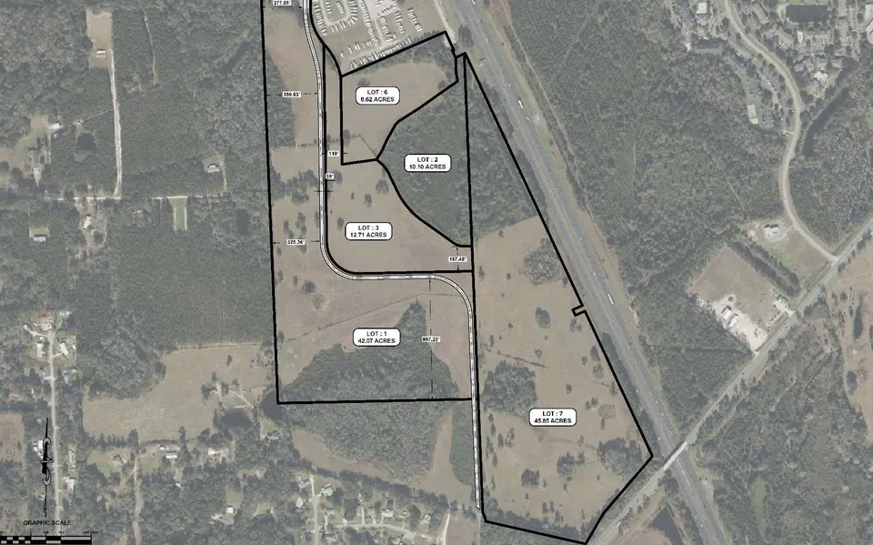 Appx 51.26 Acres Remain; This property is near RV Sales & Camping World, Southland Log Homes, Fairfield Inn & Suites, Log Cabin Homes, Hampton Inn & Suites plus Home 2; zoned for multitude of uses; in city limits with some frontage on I-75; will split into smaller parcels with price per acre TBD by # of acres sold