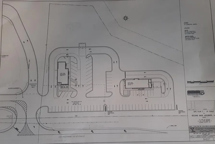 3.49 acre outparcel with two high visibility pad sites ready for development. Approximately 800 feet of frontage located next to the RaceTrac on the US Hwy 84 Bypass and GA Hwy 3 (Old Albany Road). Shared access entrance with RaceTrac.