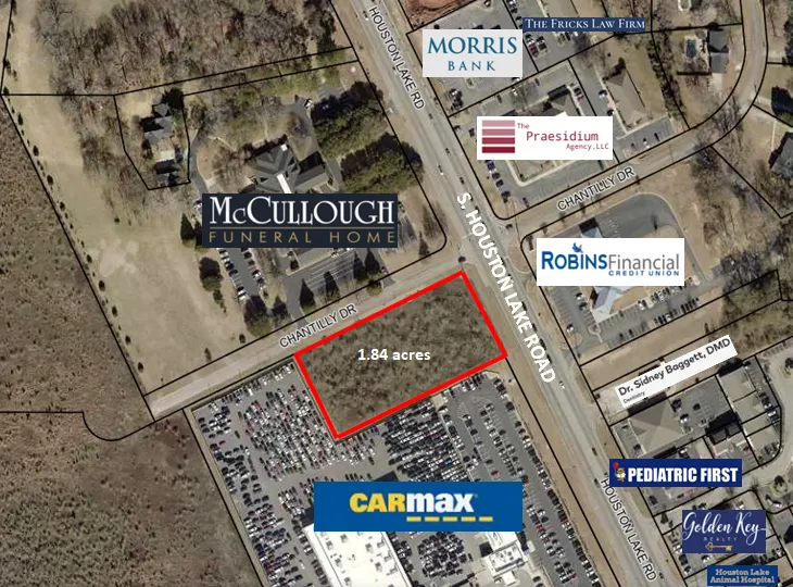 Research Parcel InformationOn S. Houston Lake Road in between CarMax and McCullough Funeral Home. Directly across the street from Robins Financial Credit Union.