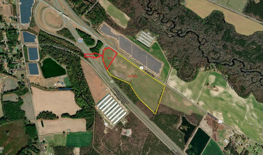 Prime Commercial property. This exceptional 5 +/- acre commercial site is strategically located just off Exit 194 of I-74 in Robeson County, NC. The site boasts seamless access via the off-ramp to I-74 Business North/South and provides excellent connectivity to the nearby town of Maxton. It is part of a larger 42-acre parcel, offering flexible development opportunities, including the potential to expand the footprint or acquire the entire tract through separate negotiations. This rare opportunity to develop in a growing transportation corridor is perfectly positioned to capitalize on the increasing demand for accessible, infrastructure-ready commercial sites. Whether your project is focused on logistics, retail, or light industrial use, this property is ready to support your vision. For more details or to discuss the potential acquisition of the full 42-acre parcel, please reach out today!