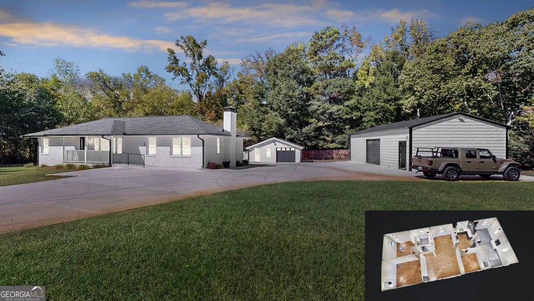 Commercial mixed use office space, 3000 SQ ft property on Hwy 61 in Villa Rica. Beautifully remodeled office space with reception area, kitchen, meeting rooms and 2 private offices and ADA compliant accessible restrooms. 2 separate outbuildings with office space and restroom finished as well as lift doors for deliveries, stock etc measuring 20x20 and 24x40, privacy fenced back area, on a full acre of land with 213 ft frontage on Hwy 61 (4-lane). Large digital sign included and billboard adjacent to property is available. Be sure to view the 3D Matterport Virtual tour