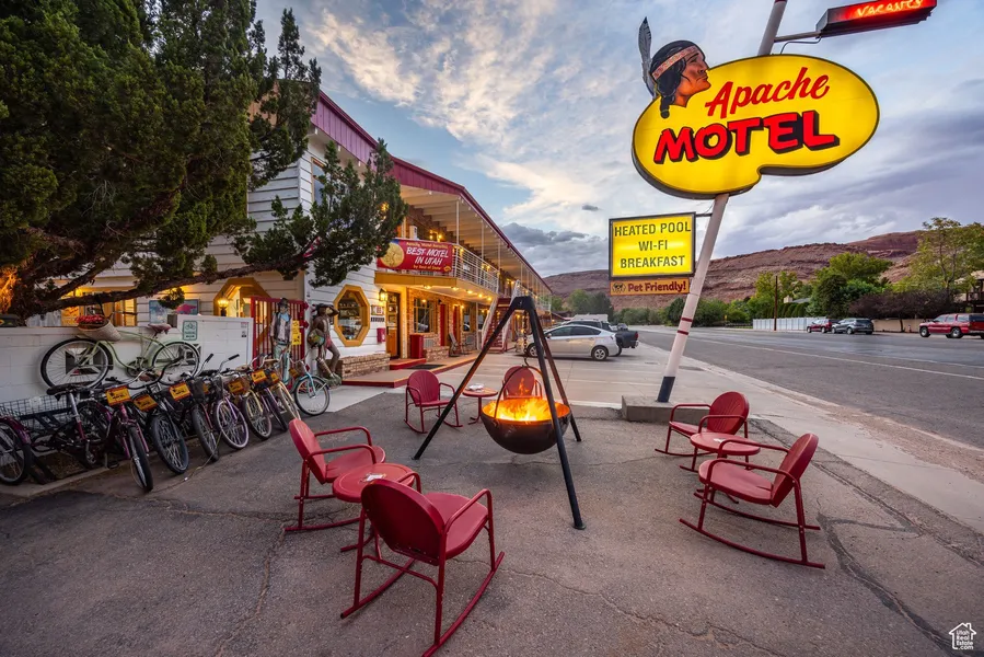 Saddle up to the Apache Motel, Moab's most iconic boutique motel. 34 rooms, including the John Wayne suite- where your guests can stay where John Wayne stayed! An ultra-modern build in 1955, this registered historic landmark was the home for Hollywood's Classic Western's elite and is now the retro-modern motel on the path to Sand Flats Recreation Area servicing bikers, jeepers, weary travelers, and National Park enthusiasts. Improvements over the last few years have included fun aesthetics and amenities- professional branding for a variety of retail items, fresh colorful paint, a dog run, heated pet wash, heated bike wash, townie bikes & bike racks, cozy fire cauldrons, outdoor cooking/gathering areas including fun Teepees, as well as refreshed rooms and lobby- offering warm cinnamon rolls and ice cream! While keeping the vintage vibe, the modern technical and mechanical improvements include Assa Abloy electronic door locks, integrated payment/reservation portal, new PEX main water supply line and majority of plumbing updated, upgraded pool equipment, and more! This opportunity also comes with great options for on-site owners and employees offering a 2-bedroom suite, as well as a 2-bedroom home with garage, sheds, and carport. There is development potential with over a quarter acre of developable land to add an additional lodging suite and/or long term rentals. All in the heart of Moab City with oversized vehicle parking! Take this one-of-a-kind relic to the next level with already proven increasing occupancy, ADR, NOI, and repeat clientele.