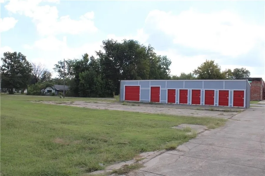 2 lots with a mini warehouse building sitting on a corner lot