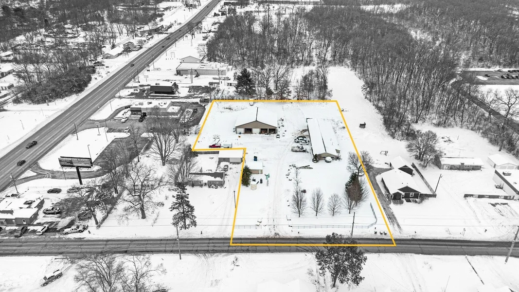 Versatile commercial property on Stateline Rd with 2.2+ acres offering multiple buildings and flexible space for a variety of business uses. The main building is 5000 sq ft and includes a finished office area with a kitchen, two private offices, and a restroom, along with a large, attached, heated warehouse featuring wide-open floor space and a second bathroom with on demand hot water. Additional structures include a 60x60 building with ten overhead doors, ideal for fleet storage or multi-bay work areas, plus a detached garage for secure equipment storage. Currently used by a contractor, landscaping company, and pool installer, this property offers excellent functionality and adaptability for operations needing office, warehouse, and extensive storage space.