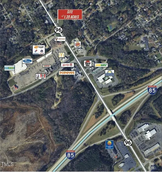 1.39 acres located .35 miles south of I85 interchange with 14,500 AADT on NC 96 surrounded by retailers. Property is zoned O&I with permitted uses of Hotel, Financial Services, Veterinary, General Commercial, Restaurant, Childcare, Studio, Office, and Upper Story Residential Additional .27 acres available if needed. Public Water & Sewer PIN# 192206296095