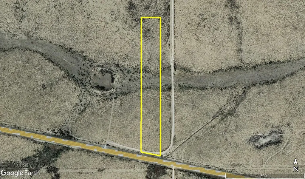Trailer park? Shooting range? Roadside restaurant? Maybe you just want a convenient location to stay overnight in your truck, 1,300 feet back from the highway. This property is as flat as they come in this area. There is a shallow arroyo running east-west through the middle of the property, about 2 or 3 feet deep. Maybe you would just like to hunt doves here while holding this large property for investment.