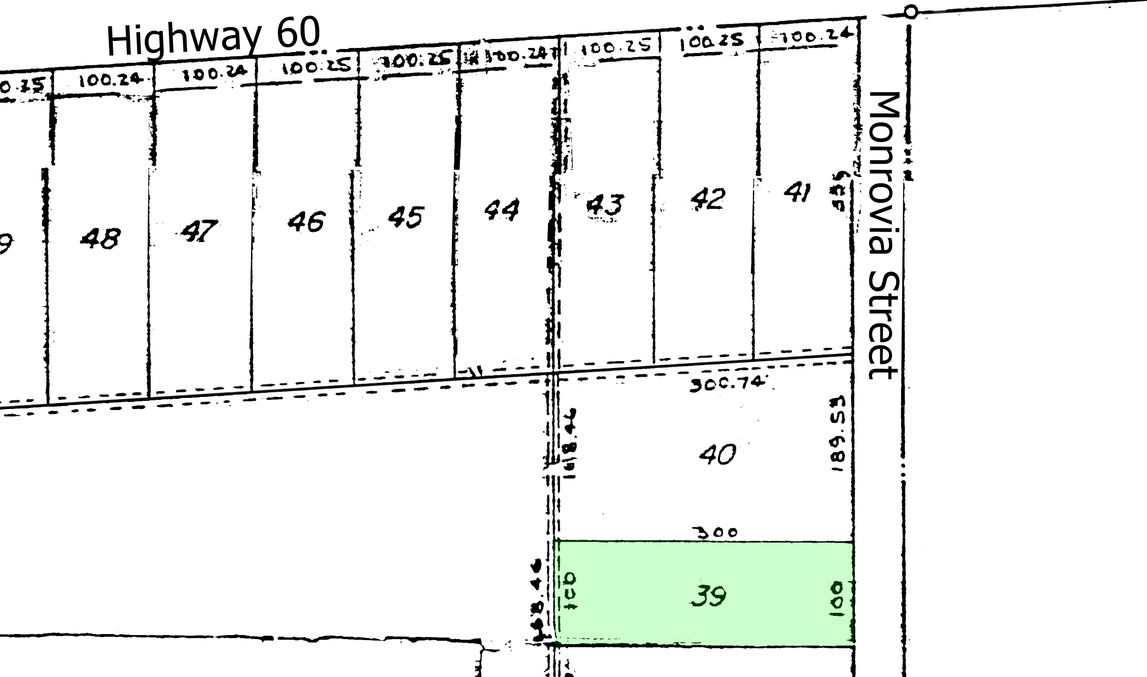 Lot 39 was originally laid out as a commercial lot, as indicated by the four digit block number. Highway 60 goes to the east past Amarillo, Texas. On its way through New Mexico it goes through Socorro, Datil, Encino, and Clovis. To the west it goes to and past Phoenix, Arizona.