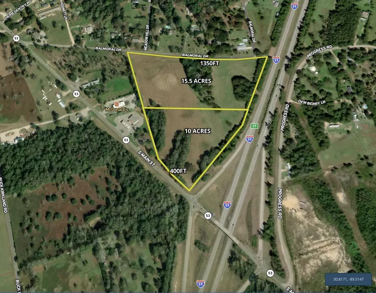 This commercial property has unlimited potential. With the property being zoned highway commercial and multifamily, you can build pretty much what you want on this property. The possibilities are unlimited. The property is located at exit 27 off I59 interstate. With approximately 1550 feet of frontage on Interstate 59, and 400 feet of frontage on Highway 53 you will have plenty of visibility for the 16,000 vehicles that pass by this location each day. Property also has over 1300 feet of road frontage on the backside to Balmoral Drive. This will provide drive through traffic to exit back on to Hwy 53. Seller will split the property if that would suit the buyer better. This property can be viewed by appointment only. Please give listing agent Art Mott a call if you have any questions.